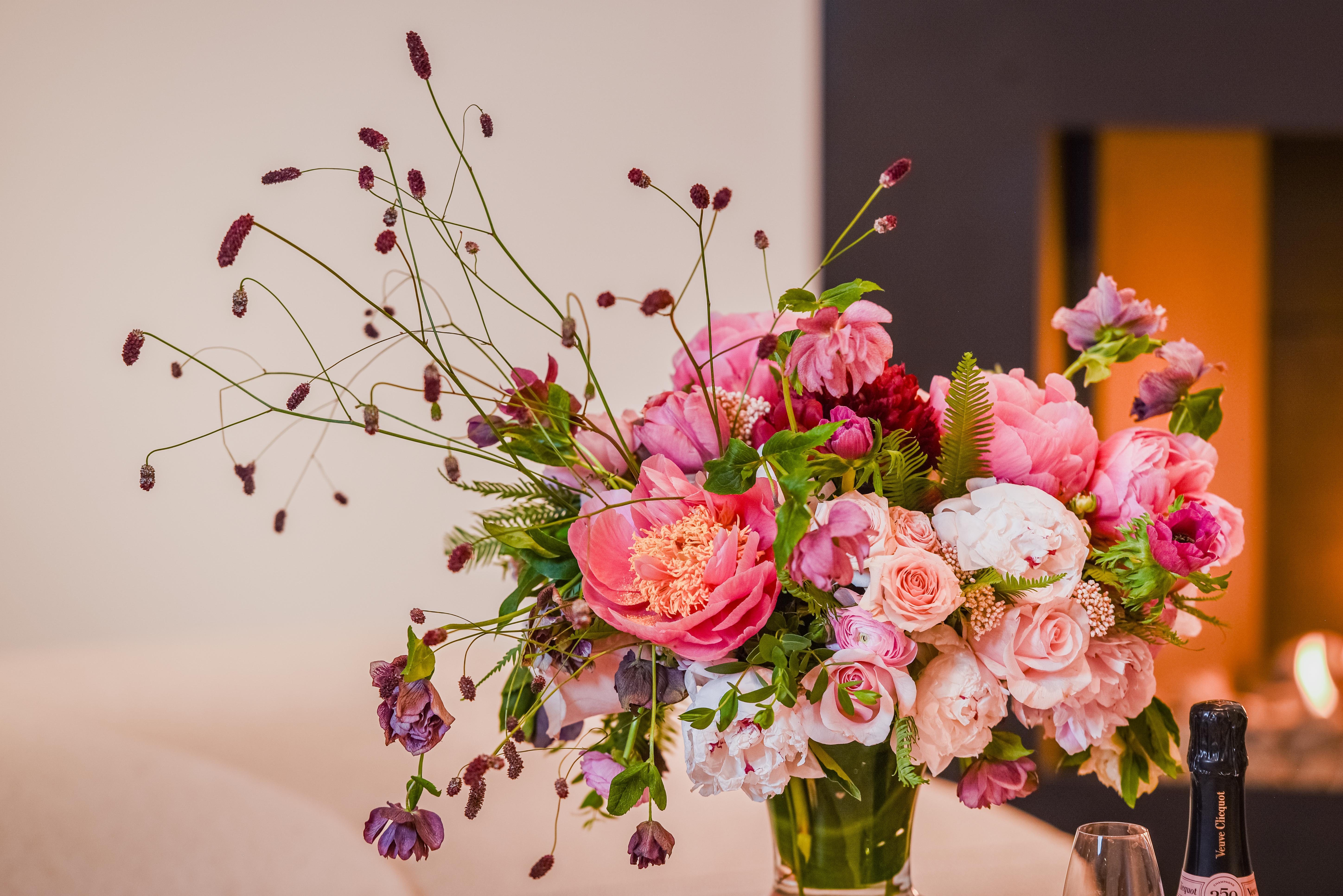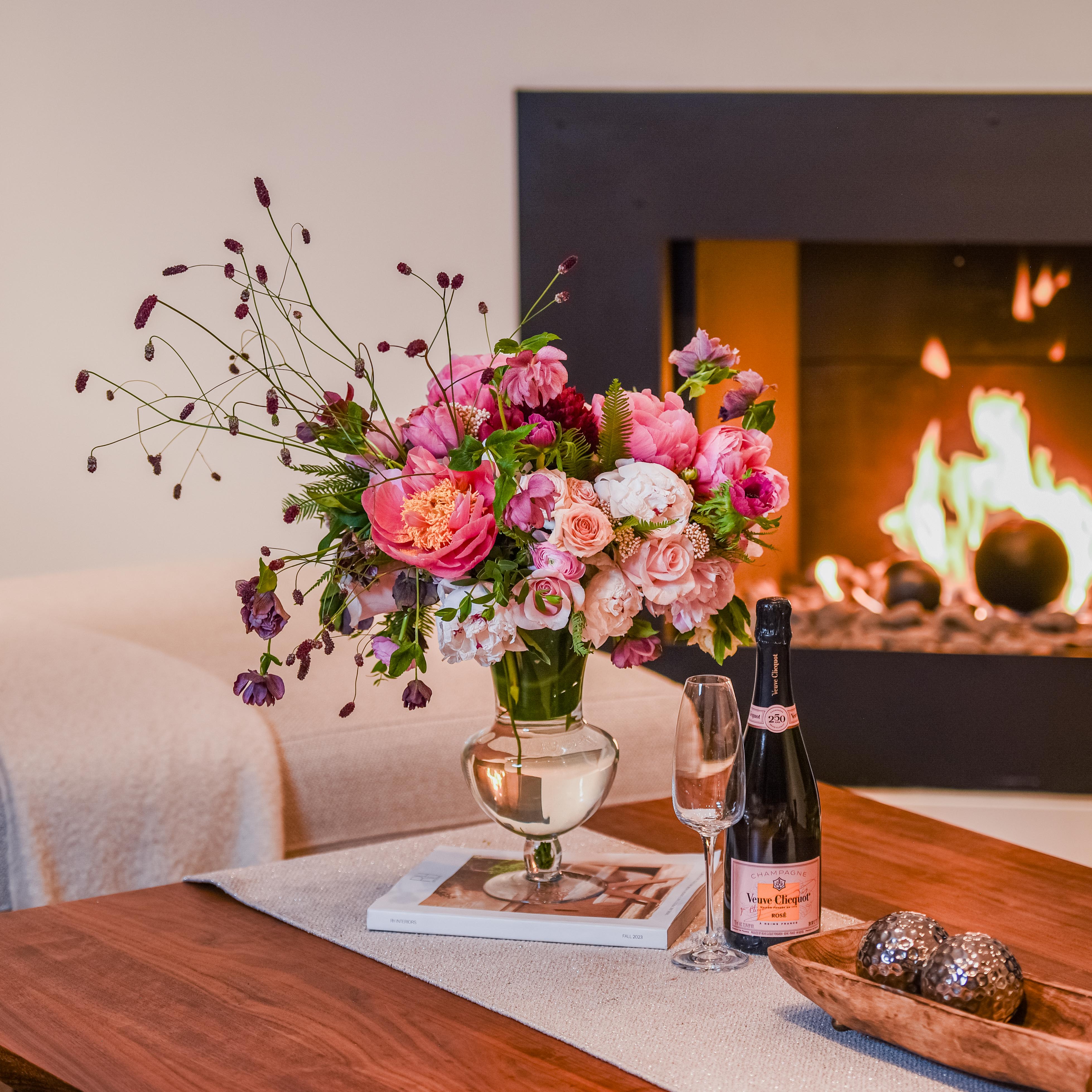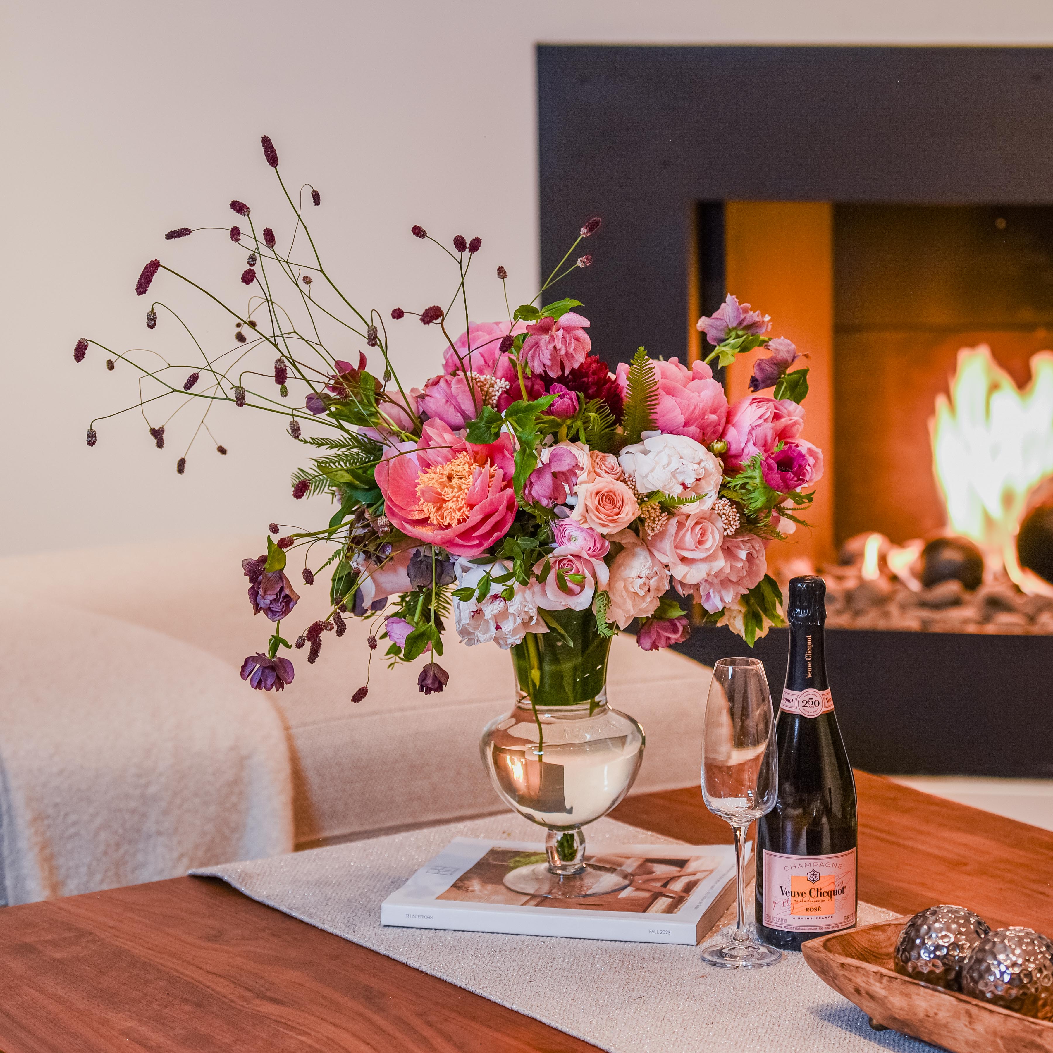Introducing our Petite Peony Bouquet, a charming blend of elegance and seasonal joy. Set in a small, tall clear glass vase, delicate peonies mingle with seasonal pink florals, creating a delightful burst of color and freshness. Perfect for adding a touch of beauty to any small space, this arrangement exudes timeless charm and sophistication.