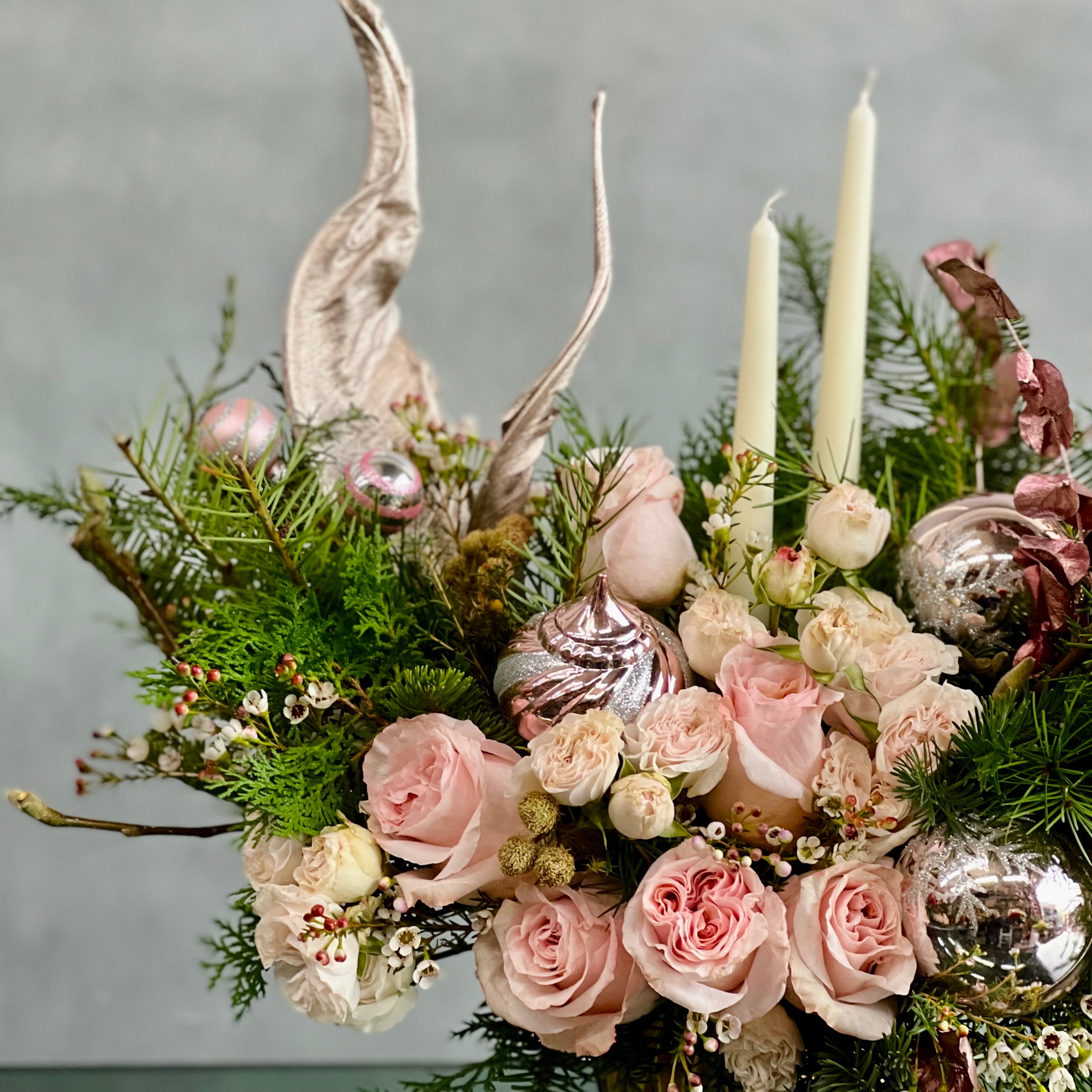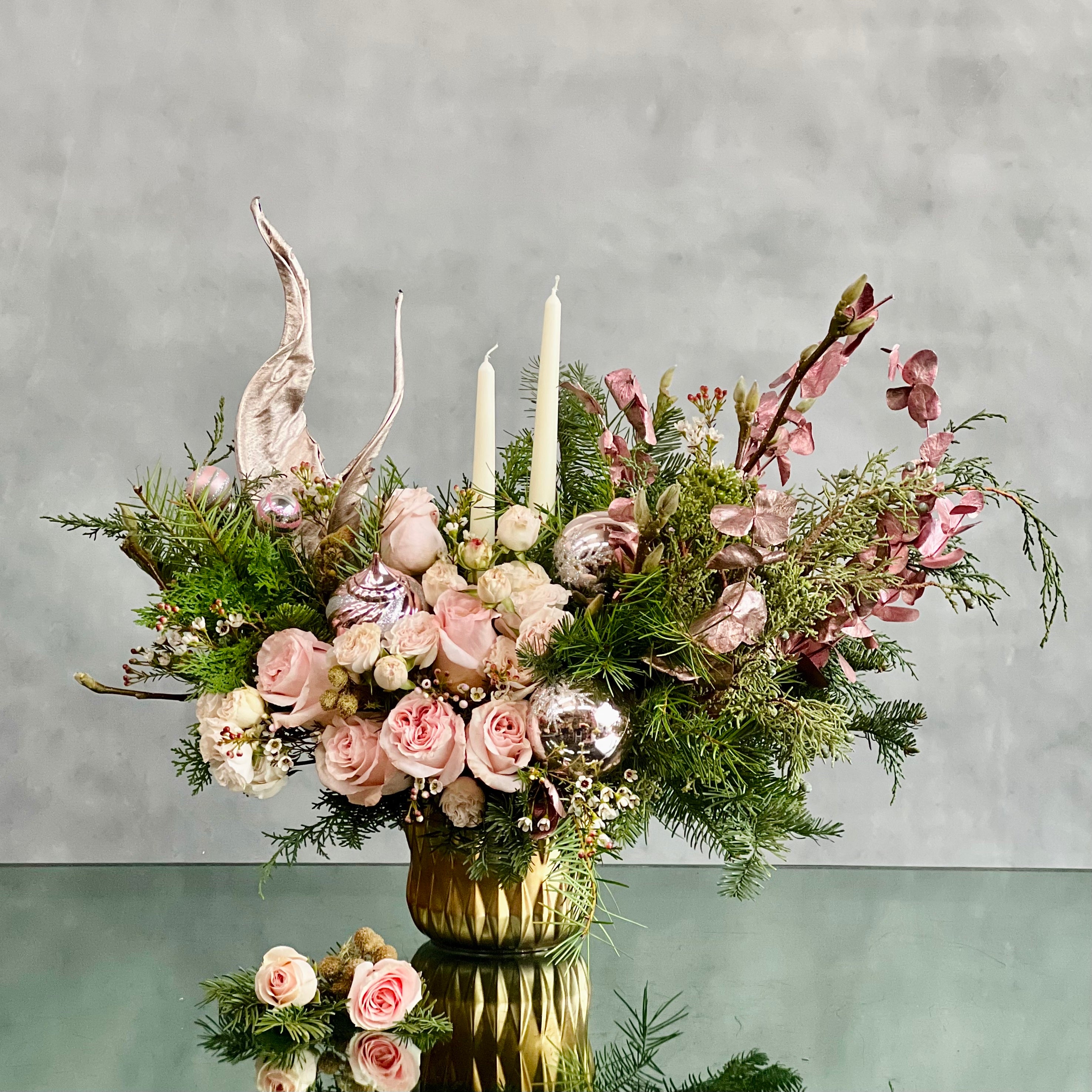 This piece is a charming addition to any setting and is placed in an intriguing vase. It brings together intricate details through the floral piece and the base allows for a touch of strength.A dreamy arrangement that’s been classically made.