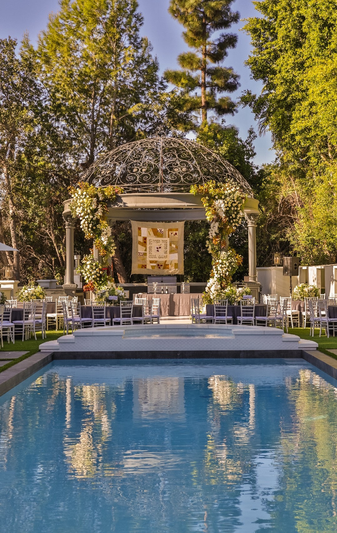 Poolside Paradise: The party spills out onto the patio, where the pool shimmers under the California sun. Guests lounge on plush furniture, sipping cocktails and enjoying the vibrant scene. Perhaps a DJ spins lively tunes, adding to the festive atmosphere.
