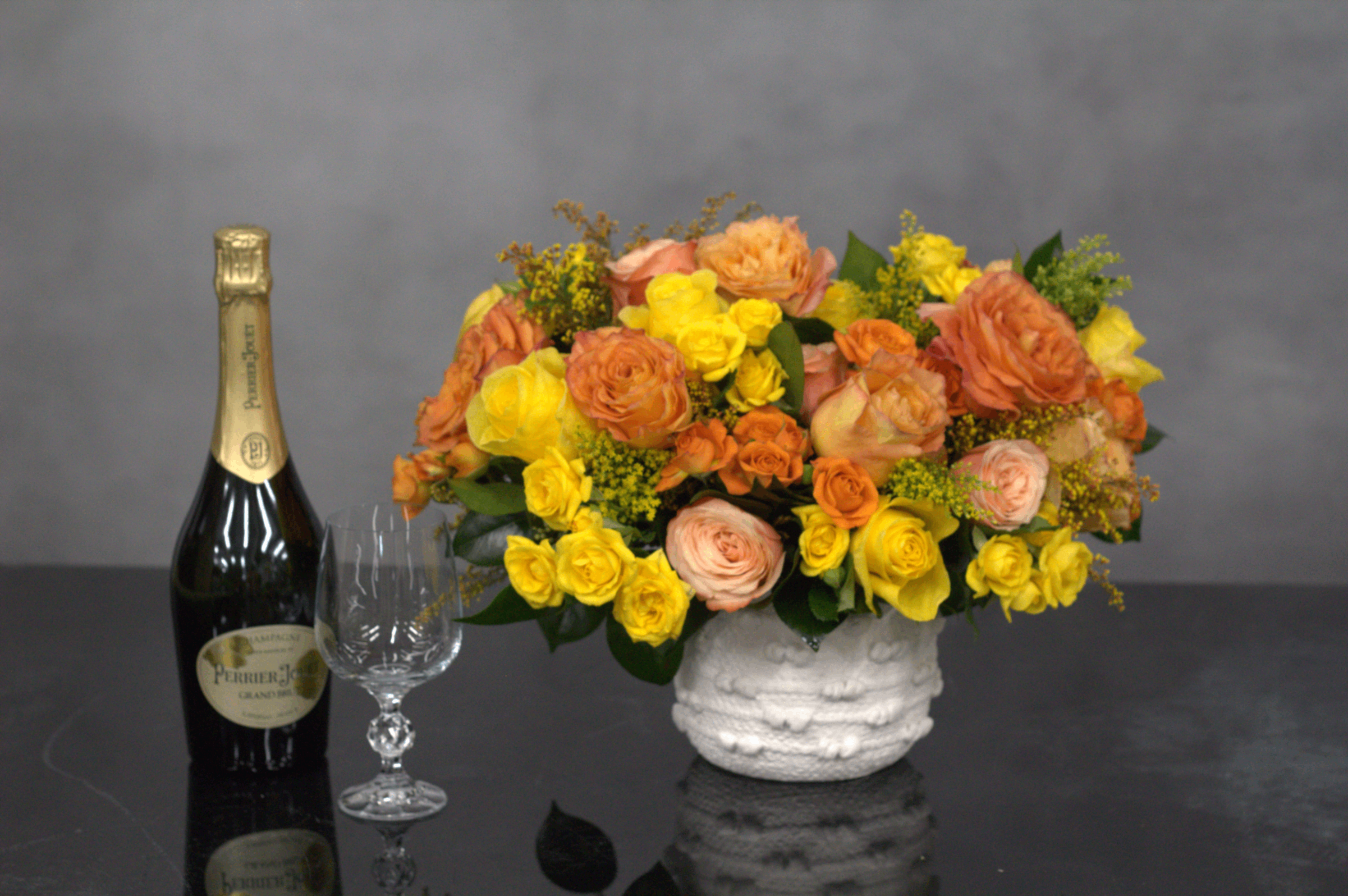 Illuminate any occasion with our “Golden Glow” arrangement by Beverly Hills Florist.  This vibrant bouquet features premium Ecuadorian yellow roses and cheerful orange garden blossoms, expertly arranged to create a burst of warmth and happiness. Perfect for birthdays, congratulations, or simply brightening someone’s day. Order now for same-day delivery !