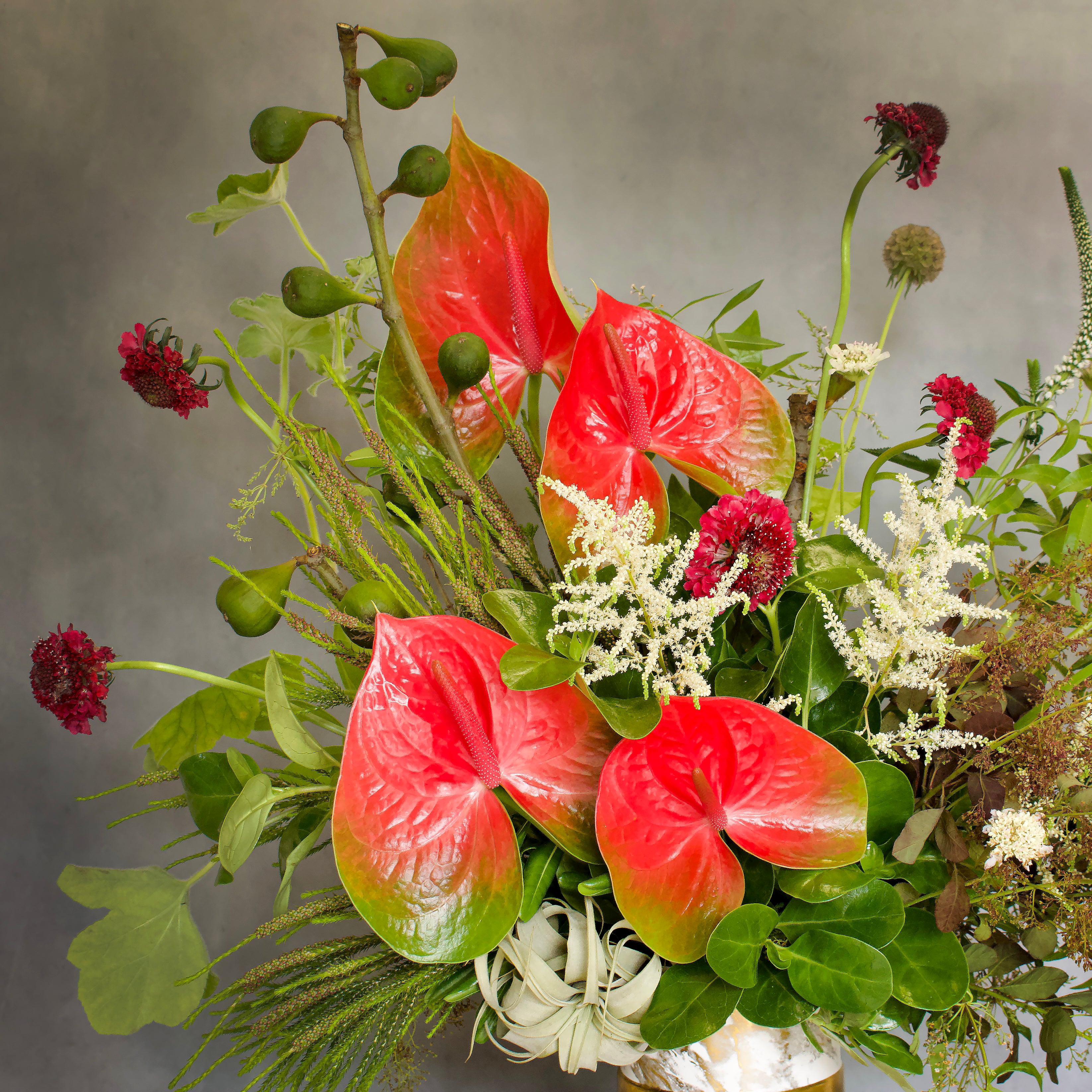 Our “Miami” is a funky and fresh take with a modern twist. An arrangement made with Anthuriums to add edge placed with an array of various quirky florals and greens to bring the floral arrangement together.
