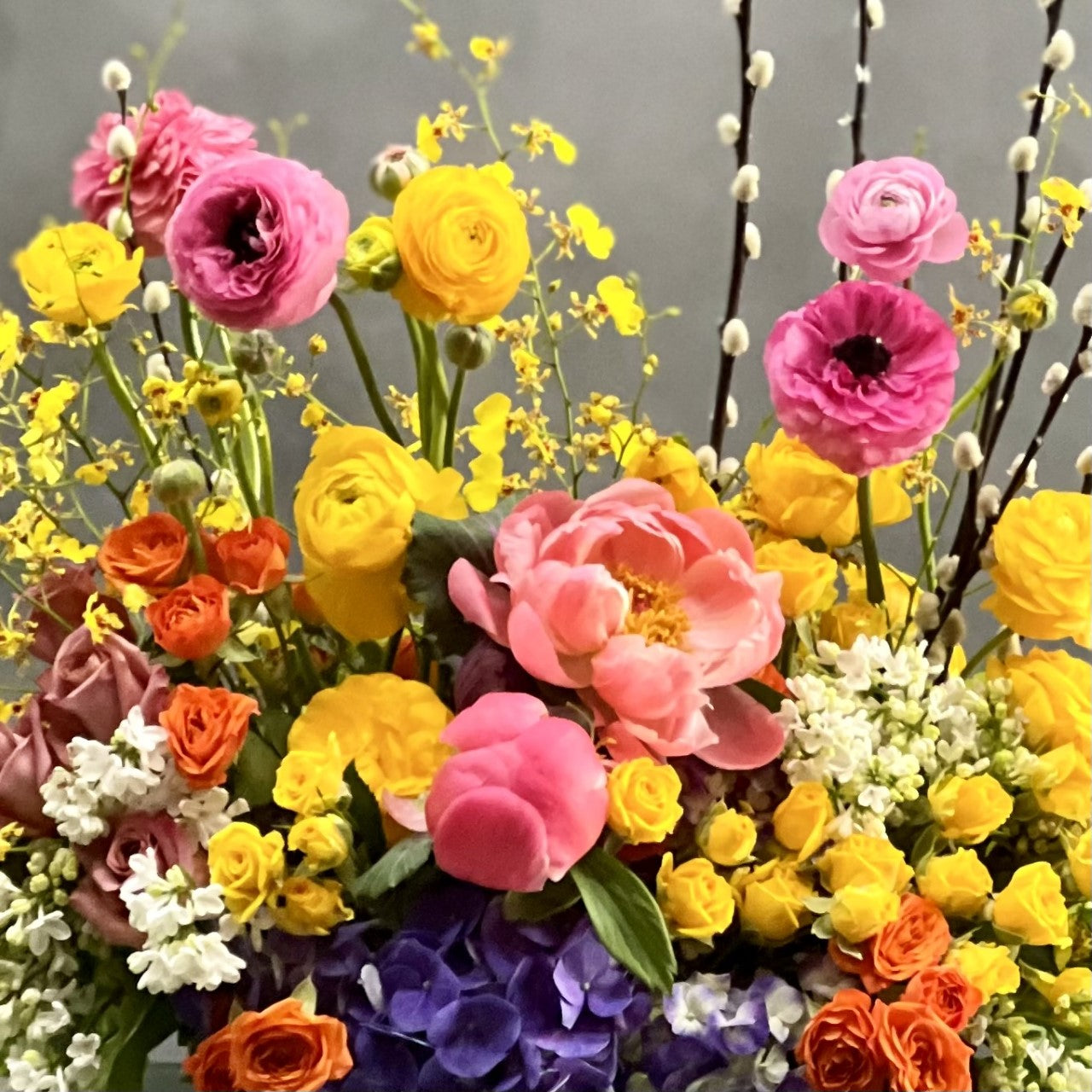 Spring is here our team at Beverly Hills Florist presents same day delivery for our Spring Fields! Our team has created this arrangement that has all the wonderful seasonal spring flowers in a low oval bowl. This floral is perfect as a centerpiece. It can be for a anniversary, just because, love and romance and a welcome !