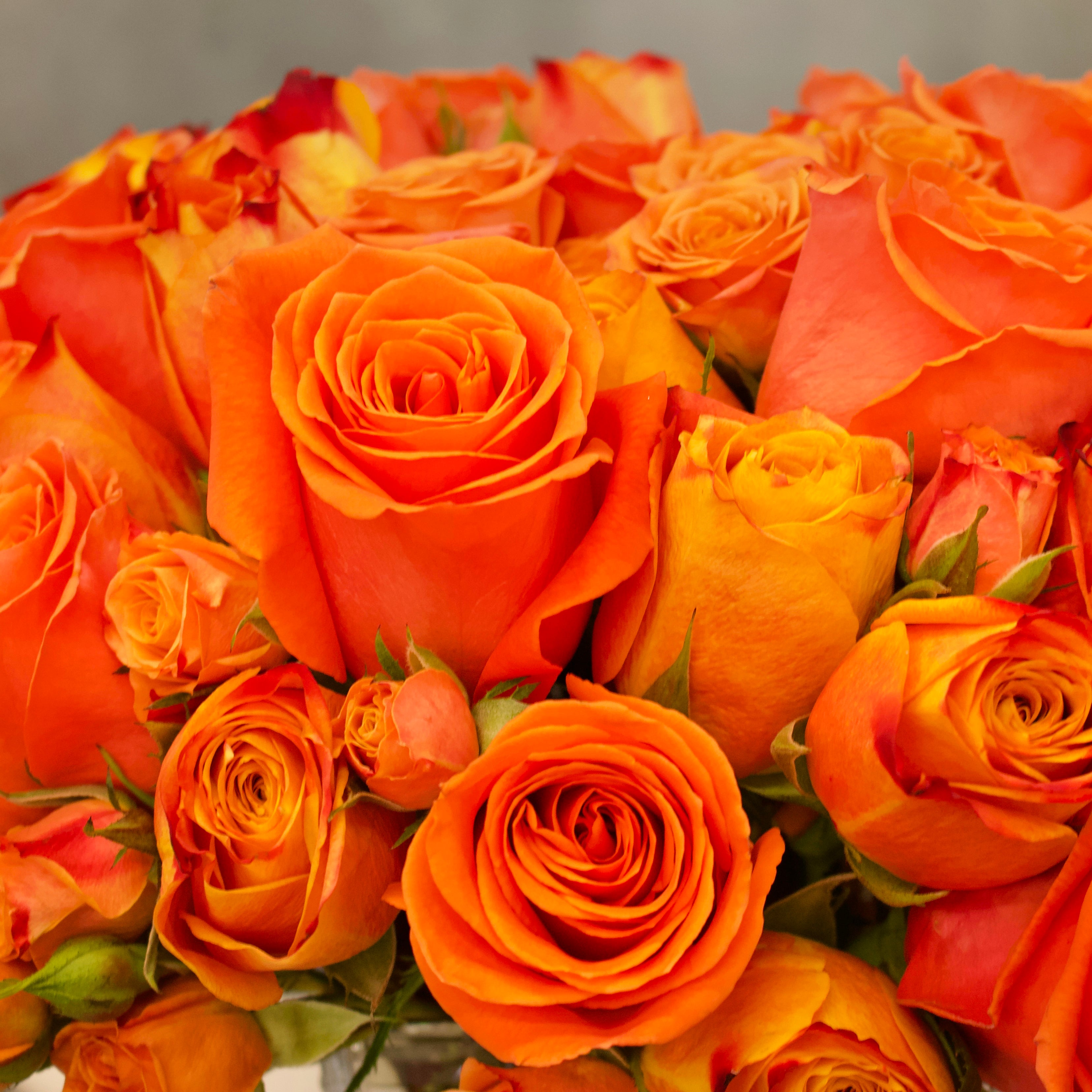 Two-dozen pretty Peach Roses and Garden Spray Roses in a square glass vase from Sherman Oaks Florist. These colorful Roses are a surefire way to spread joy, and they make an excellent gift for birthdays and other celebrations.