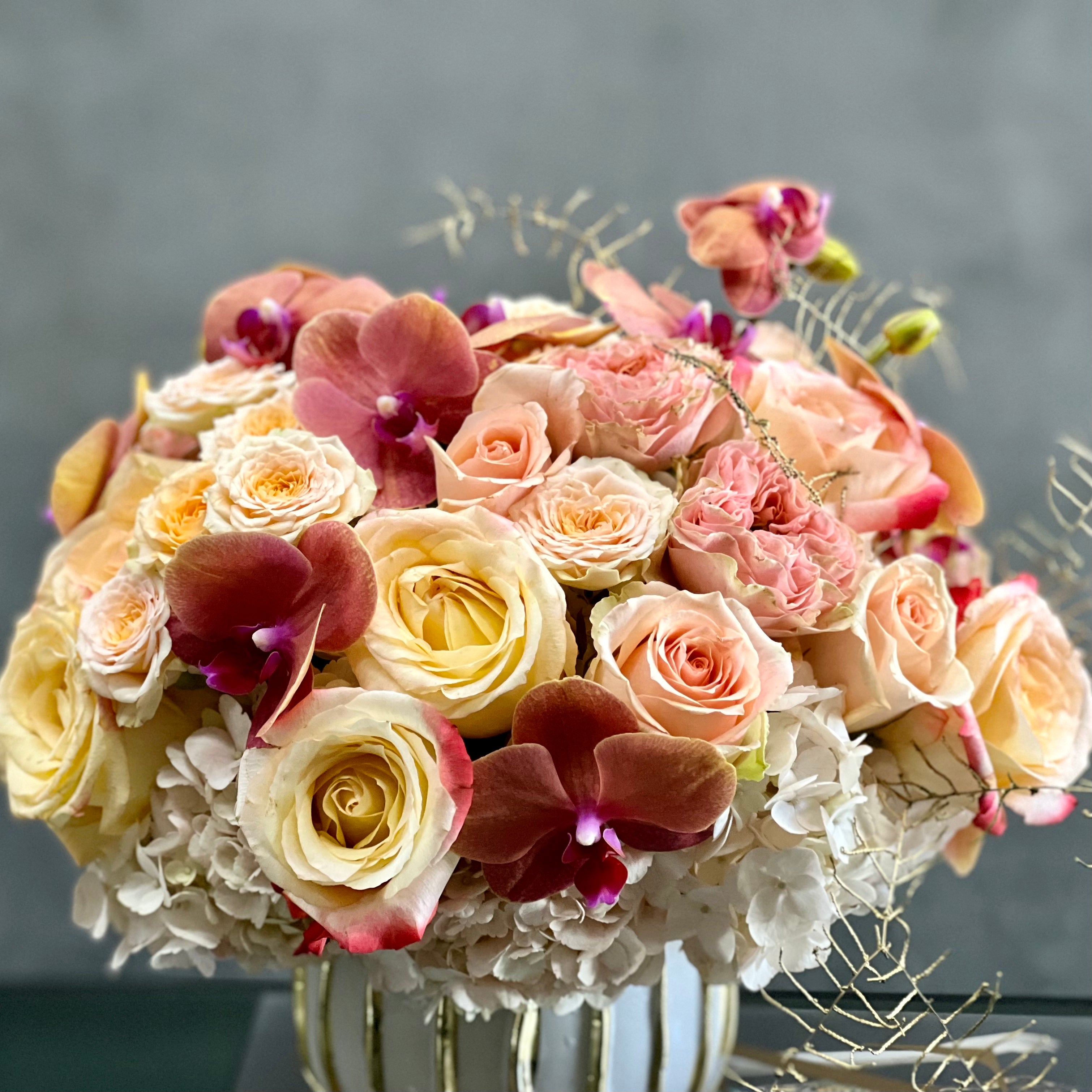 My Beverly Hills Florist team created this exceptional beauty for same day delivery  …. each and every graceful, gorgeous Rose and orchids is astounding. They come together in their natural beauty with little accents to create a lovely, abundant, and breathtaking arrangement all their own and ready for same day delivery.