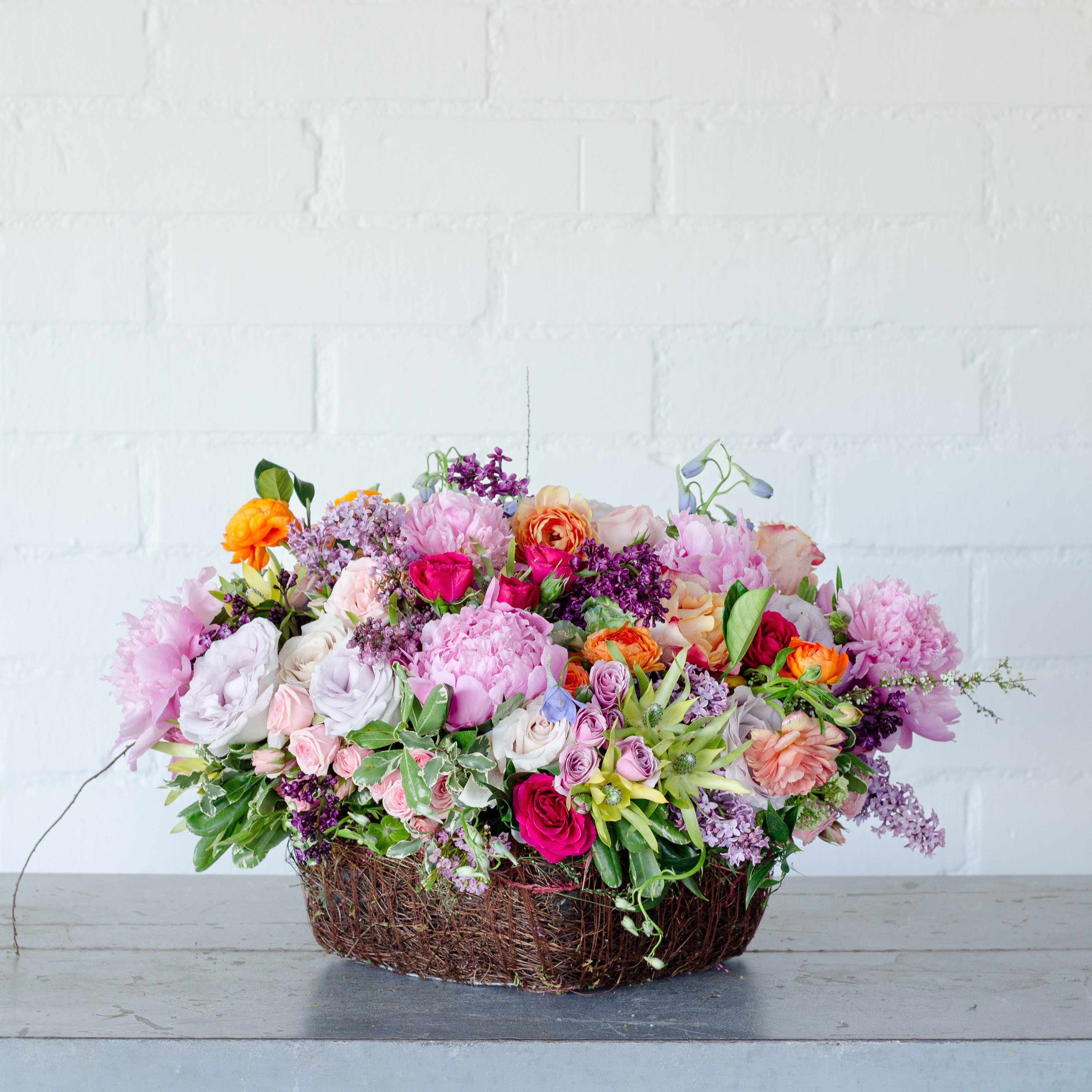 Same day delivery from your local florist! Delight in the ethereal beauty of this luxurious floral arrangement featuring 50 stems of white and blush peonies. Housed in an elegant 12-inch pedestal vase with rock accents, this ensemble exudes sophistication and grace. The striking display showcases the delicate peony stems exposed, creating a visually captivating arrangement that seamlessly balances compact elegance with abundant beauty. Elevate your space with this stunning centerpiece that captures the essence of timeless charm and natural elegance