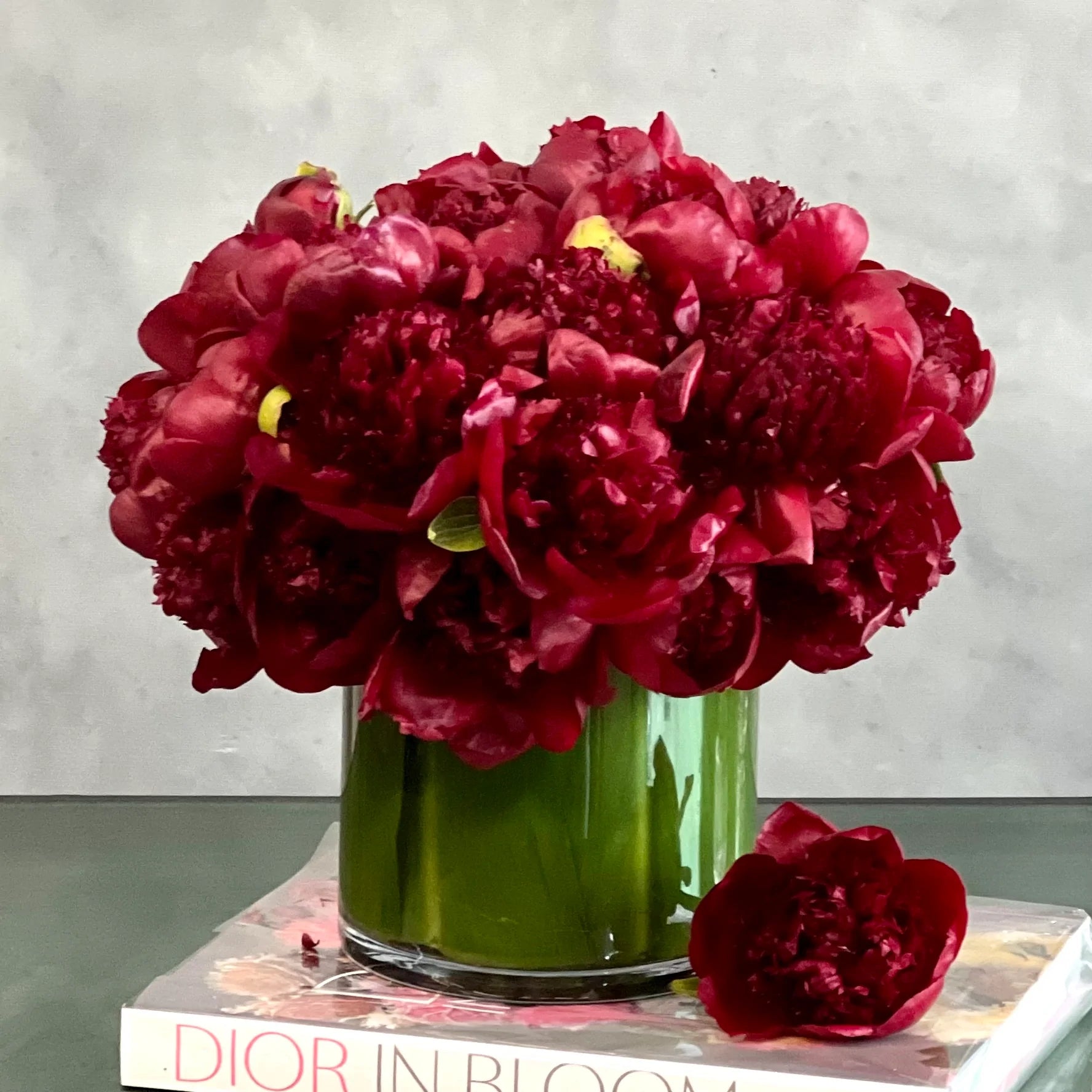 Our “One & Only” arrangement is sure to make a statement. A piece that will make someone say wow! It is now available for same day delivery and makes the perfect Birthday, Just Because and Thinking of you gift. Beautifully arranged in a cylinder glass vase that is leaf lined and arranged with burgundy Peonies.