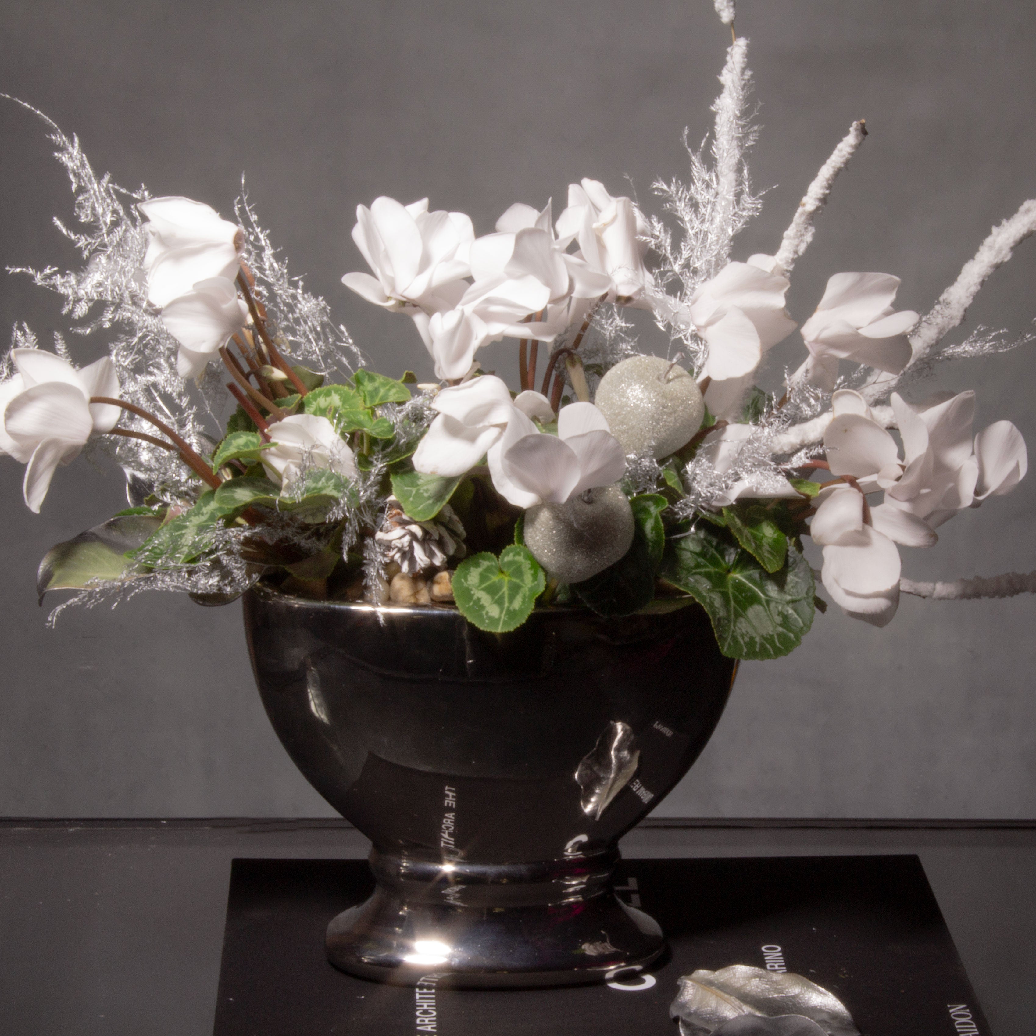 Add some elegance and sophistication to your holiday decor with our exclusive Xmas Cyclamen plant. With festive elements and delicate blooms, this plant is sure to impress that special someone this holiday season. Transform your home into a winter wonderland with our exquisite Xmas Cyclamen plant. Adorned with festive elements and exquisite blooms, this sophisticated plant is the perfect gift for that special someone this holiday season. Elevate your holiday decor with our exclusive Xmas Cyclamen plant, and show your loved ones how much they mean to you with this elegant and luxurious gift.